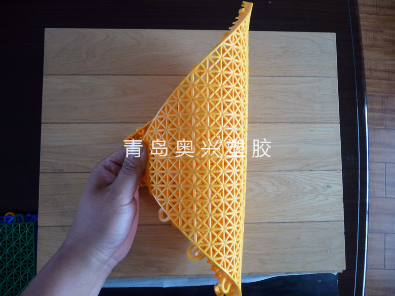 4、室外使用利用率高:由于产品的基本结构为篓空结构,地板的底部有水槽,所以清洗地板或雨后均无积水存在,保证了悬浮拼装地板的利用率。
