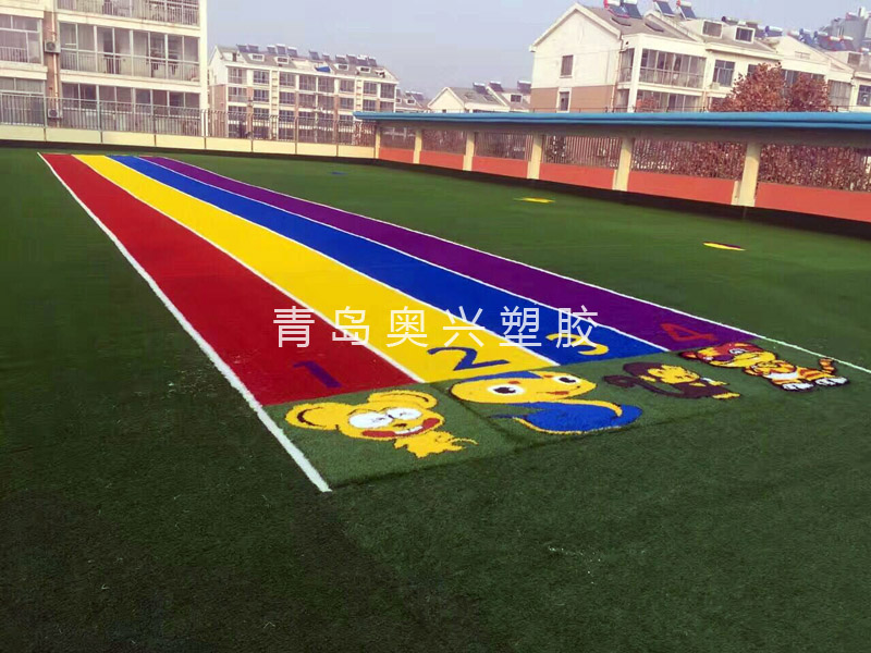 环保幼儿园人造草坪养护简单,费用低,用清水冲洗即可去除污垢,而且具有不褪色、不变形的特点,可在各种基础表面安装,基础质量要求不高,不怕开裂,无起泡脱层之忧,既简单又经济。人造草坪场地使用率高,既减震、又无噪音、安全无毒、富有弹性,阻燃性能好等特点,很适合于幼儿园学校使用,是现时最佳的活动、训练、比赛场地。