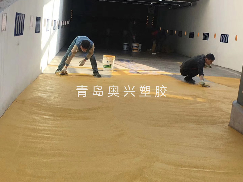 3、底涂施工、当基面是水泥时用户外道路专用粘接底料按配比搅拌均匀后用辊筒滚涂施工,在沥青路面施工时不用涂刷底涂;